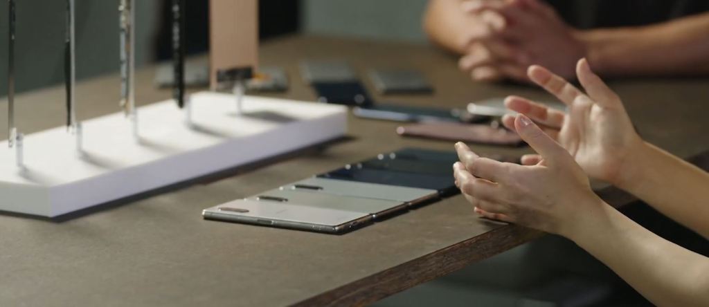 Xperia 5 II 的黑色並非是深沈或純粹的黑,而是像是夜晚閃爍著微光的薄霧襲來一陣微風,那種溫柔的黑。而灰色是冷靜的顏色,如同水面的顏色,微風吹皺一池春水,光穿透了漣漪的折射。藍色部分較前代更藍,像是層層疊疊深淺不一的水面,把藍色堆疊加深般。粉紅色的部分,則像是穿透雲朵的光芒,天空中明亮的朝粉霞注入活潑朝氣。
