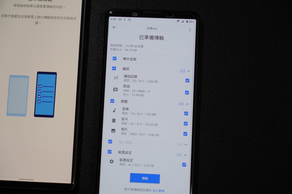 如此一來就可將通話紀錄、訊息、媒體 (音樂 / 影片 / 照片 ),裝置設定轉移到新手機內,但請留意到 LINE 訊息不在轉移功能中,請至LINE應用程式自行備份。