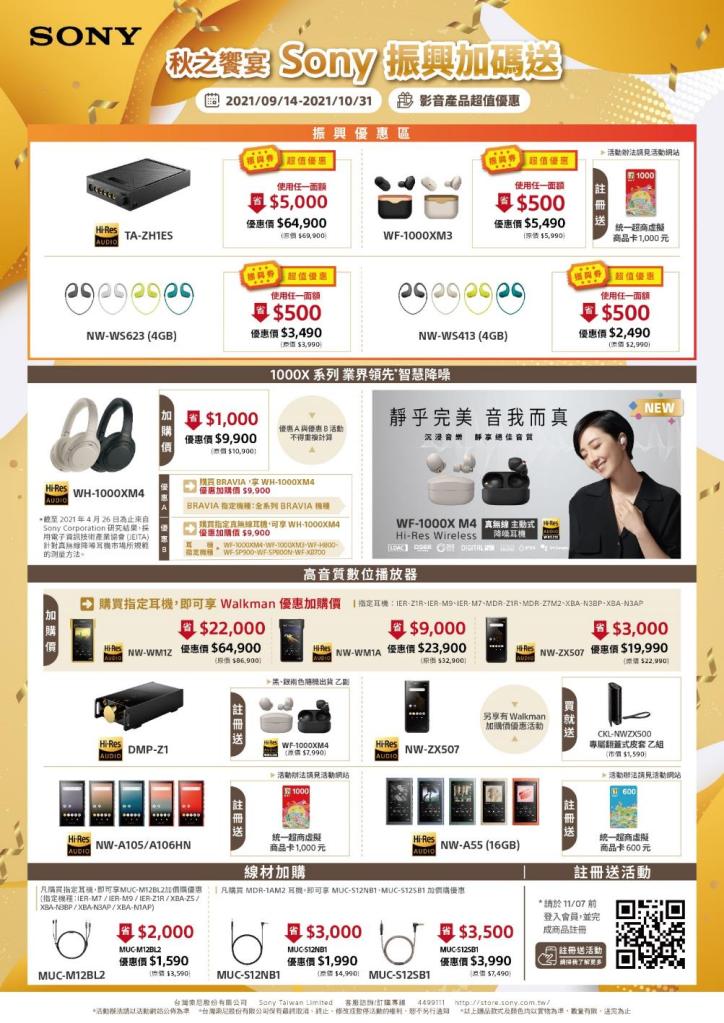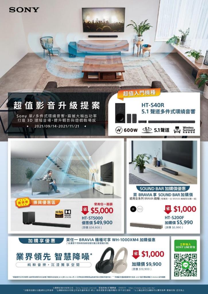 (音響產品活動即日起至2021/10/31止,活動網址: https://event.sony.com.tw/2021/09/Autumn_SP/VS/)