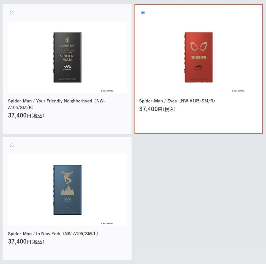 NW-A105 隨身聽 Spider-Man Collection 售價 37,400 円(税込)