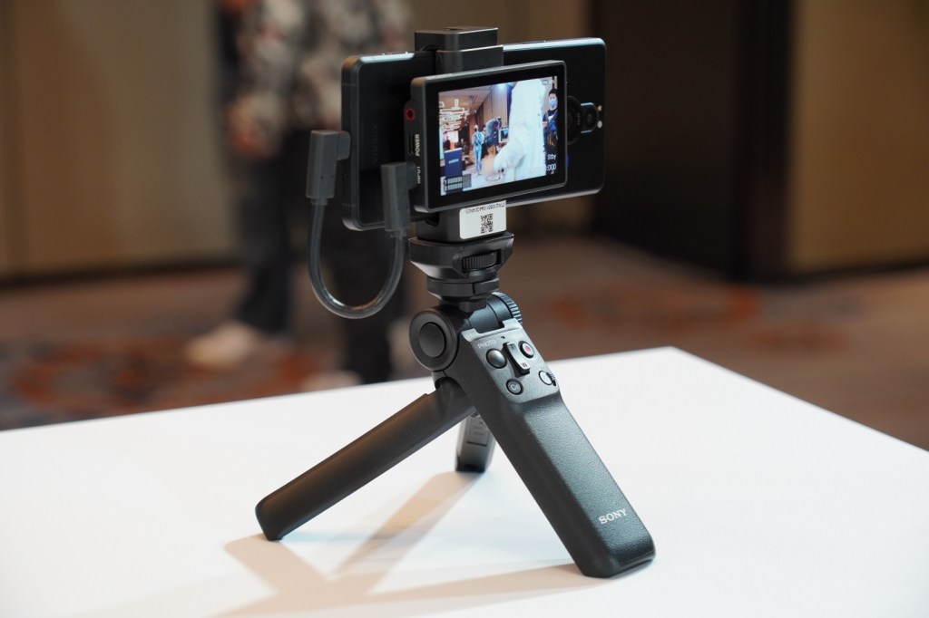 使用 Xperia PRO-I 和 Vlog專屬外接螢幕拍攝時,還可以搭配GP-VPT2BT無線遙控拍攝握把,握把上即可直接按紐開始/停止錄影,就不需要按下Xperia PRO-I螢幕操作功能,更加方便順手!