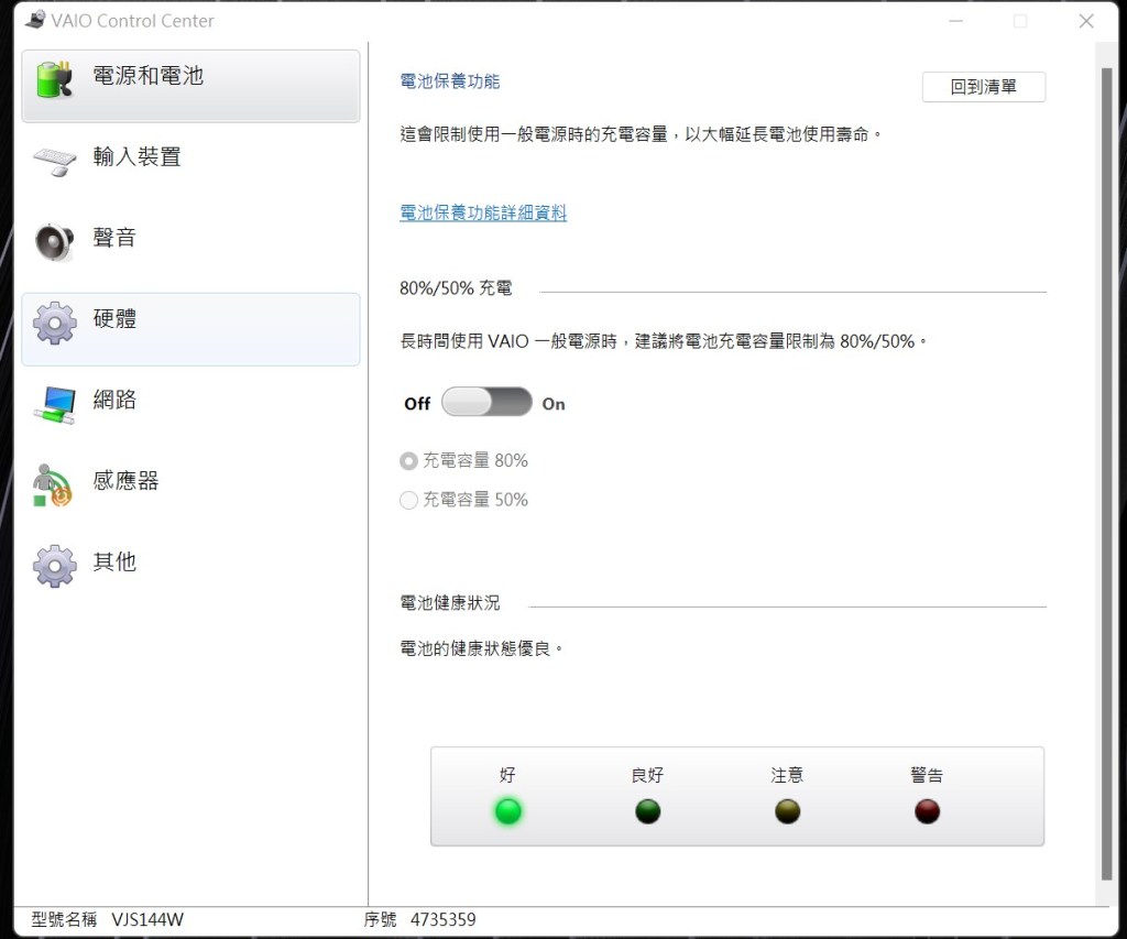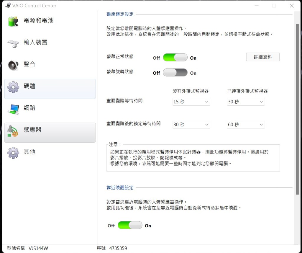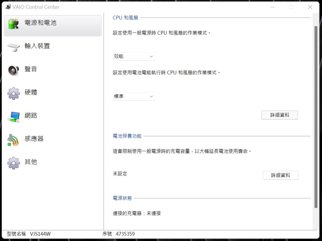 軟件部分,搭載Windows 11作業系統,除了原生VAIO桌布外,還有一套用於管理VAIO的控制台,在VAIO Control Center可以管理電源和電池的設定。