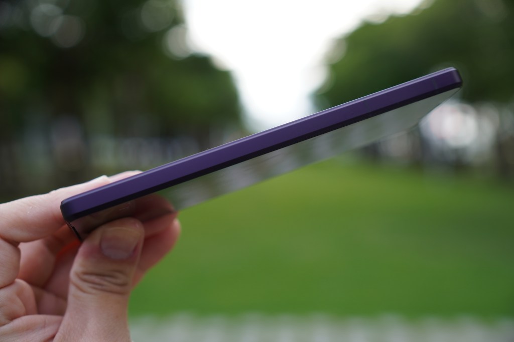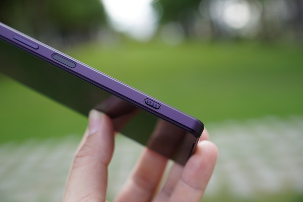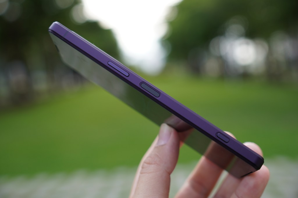 新功能一口氣增加太多,先從設計面開始說起,畢竟高顏值與Sony品牌劃上等號。Xperia 1 IV 採用減法美學 – Less is More,由一塊平面開始發想設計,剔除不必要的元素,如同打磨武士刀般,追求精確的工藝精神,展現本質純粹之美。Xperia 1 IV 在邊框也追求極小化,僅有1.45mm,重量也僅有186克。值得讚賞還有這次前後平面的設計,除了握感更加舒適外,邊框輪廓包覆螢幕周圍也讓視覺上更具層次感,跟前代比起來更加俐落、洗鍊。搭配這次推出的深沉消光霧面處理,低調沉穩,經過光線的折射就會產生不同的顏色變化,Xperia 1 IV 提供幻境紫、冰霧白、夜瑟黑三色。