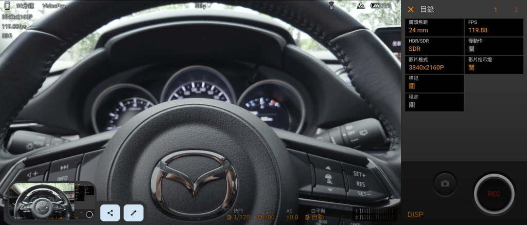 自Xperia PRO-I 就獲得不少好評 Videography Pro錄影功能,這次在 Xperia 1 IV 也有加入,相較Cinema Pro專業界面,Videography Pro提供更直覺的操作介面,較適合一般用戶或創作者使用,實際操作幾遍就可以上手。同時三顆鏡頭皆支援4K HDR 120fps高幀率錄影,錄影規格不只是手機界首創,目前僅有部分高階單眼相機才有配備。