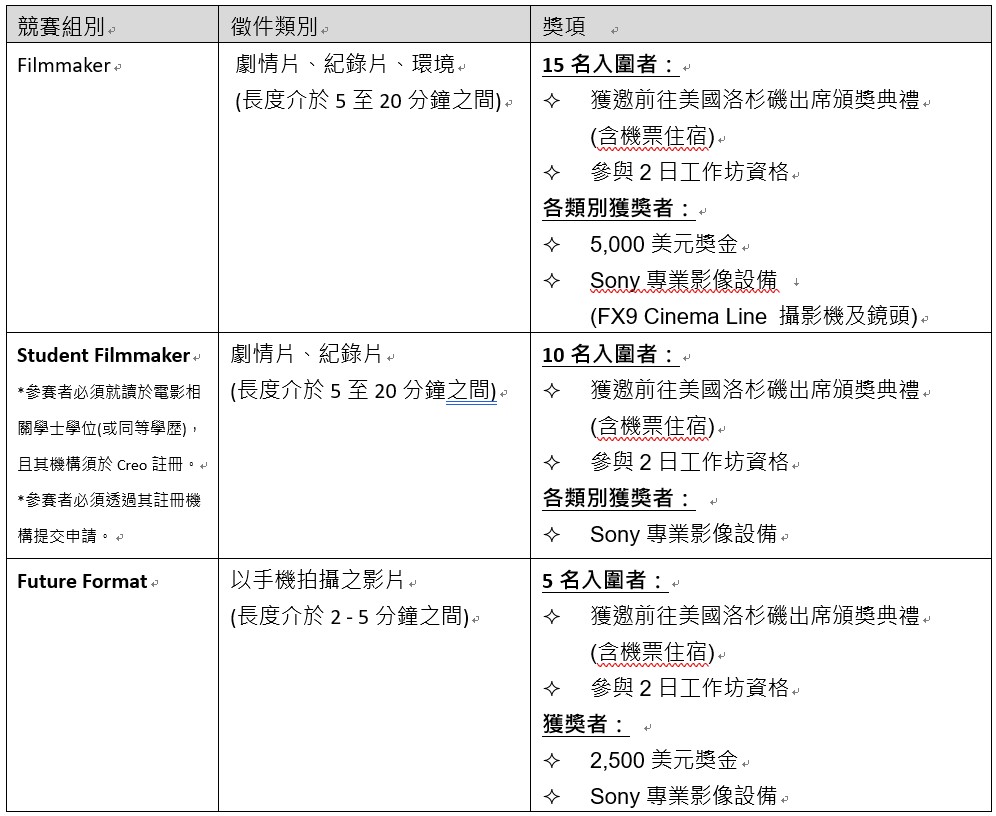 - 詳細活動資訊請參考:www.sonyfuturefilmmakerawards.com