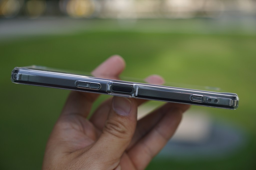 RASTA BANANA ( 香蕉牌 ) 新推出手機保護殼通過美國 MIL-STD-810H 軍規認證,邊框採用 TPU 材質,背面則為高透明壓克力材質,硬度達到 5H 等級,除了可承受相當程度衝擊吸收外,也能減少外力造成表面損傷。不曉得各位有沒有覺得,通常市面上掛有軍規認證的手機保護殼,外型設計大多略為粗曠,鮮少有在防護與設計取得平衡點的產品。這次 Xperia 1 V 真的是一款集大成之作,外型上有了很大的突破,比如說在玻璃背蓋上蝕刻了非常精細的格紋設計,還有側邊採用跟 Xperia PRO-I 一樣的環繞刻紋設計,以及帶有菱格紋的實體快門鍵,這些設計細節讓 Xperia 1 V 整體質感瞬間升級! 搭配 RASTA BANANA ( 香蕉牌 ) 手機保護殼完全不會影響到手機原創設計。