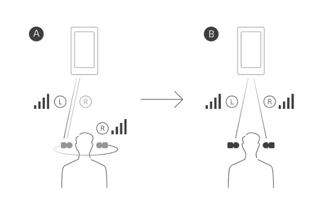 頭部追蹤透過自動調整音場來補償頭部運動,確保接近真實且震撼的聆聽體驗。聲音與智慧型手機螢幕精確配合,即使在行進間也不例外,連接到相容智慧型手機/服務,讓您完全沉浸在觀看體驗之中。