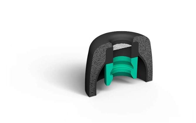 新噪音隔離耳塞頭以獨家材質製造,改善貼耳感,提升舒適度,這歸功於新設計的形狀減少耳朵的壓力。耳塞式耳機有四款尺寸,包括 SS。