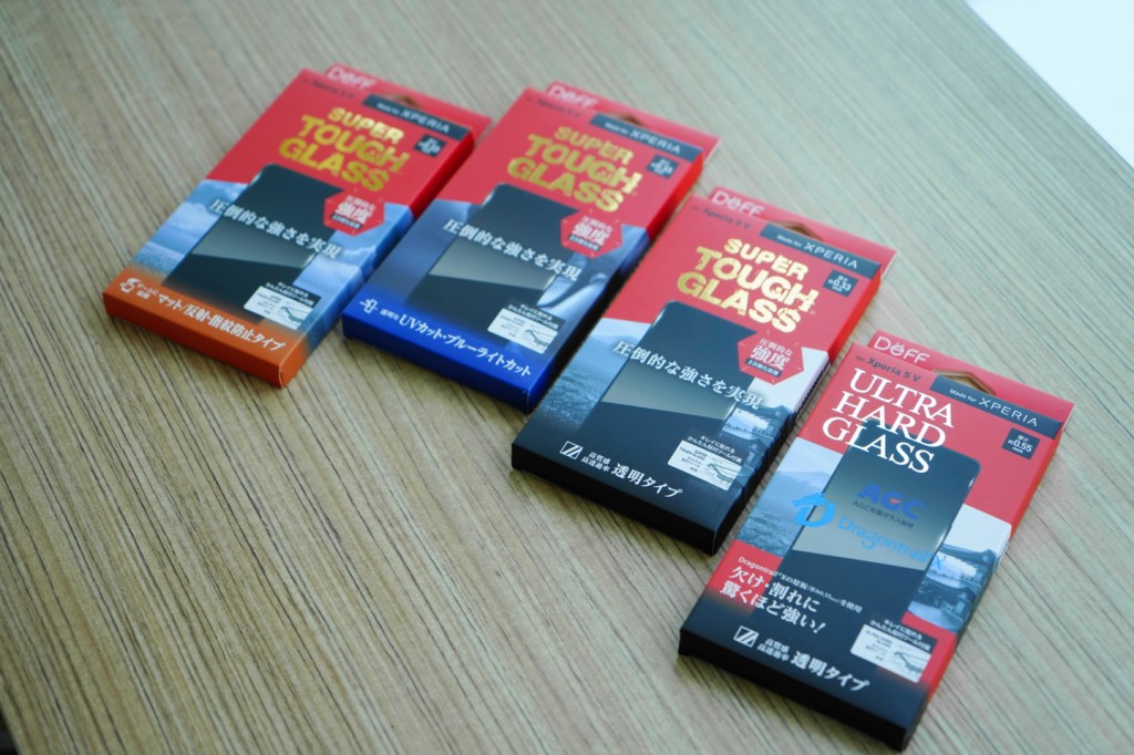 說到螢幕保護貼,一定要提到日本 DeFF手機配件品牌,這次第一時間發表針對 Xperia 5 V推出的相關配件。分別有ULTRA HARD GLASS系列與SUPER TOUGH GLASS系列螢幕保護貼,均採用日本 AGC公司旗下 Dragontrail X ( 龍跡 )旗艦款玻璃,是世界上最高硬度的化學強化玻璃之一,硬度超過鉛筆硬度9H,達到了莫氏硬度(礦物硬度標準)7以上,玻璃表面採用多層塗層處理,不僅能夠輕鬆操作,手指滑動順暢,而且對污垢具有較強的抗性,甚至可輕鬆擦拭掉油脂、化妝品等附著物。