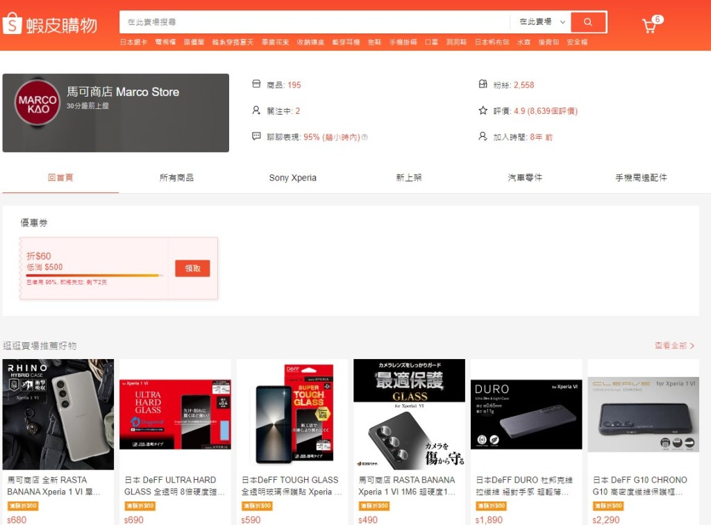 蝦皮: https://shopee.tw/kaomarco