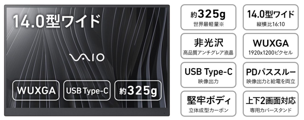 尺寸與重量:採用14.0吋16:10 比例顯示器,解析度為1920×1200,重量約325g(最薄處僅3.9mm)。