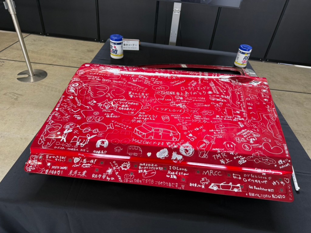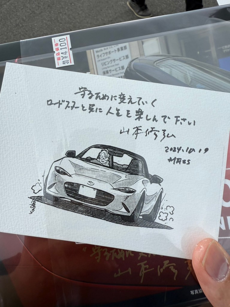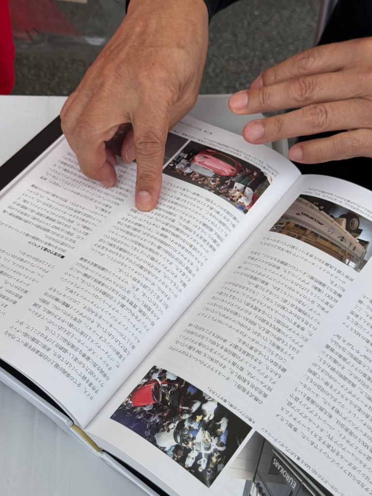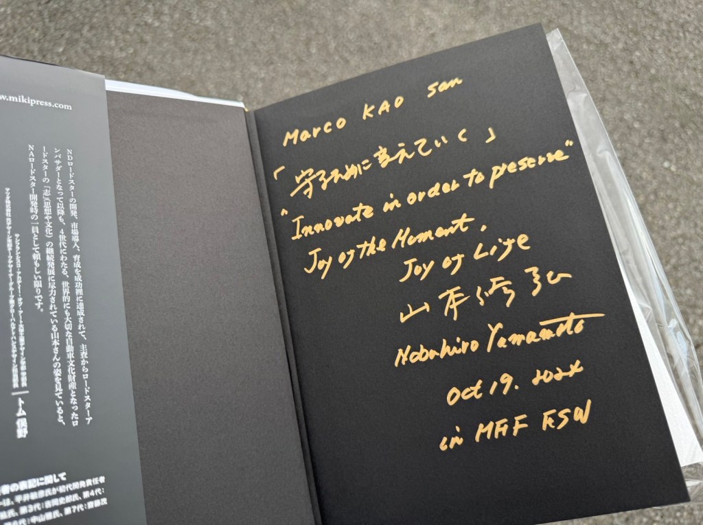 這次活動是Mazda迷的狂歡盛會。Mazda 787B的表演精采絕倫,而Mazda MX5車主們在賽道上的比賽更是讓人血脈噴張。我在這裡選購了不少原廠限定商品,還有幸得到了MX5設計師的親筆簽名。