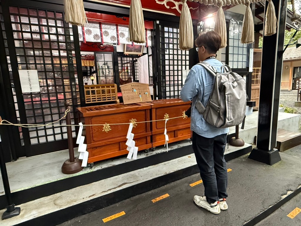 接下來,我們為了祈求財運亨通,與友人駕車來到日本三大財運神社之首——新屋山神社與新倉山淺間神社。這裡的美景讓人心曠神怡,彷彿所有的煩惱都隨風消散。走在神社的林間小道,感受著空氣中的寧靜與清新,真的有種療癒心靈的效果。