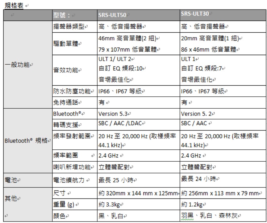 產品頁面: https://store.sony.com.tw/product/SRS-ULT30