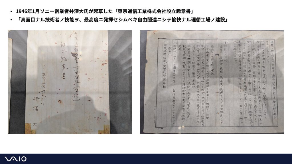 2025 年春季,糸岡 健社長有機會參觀位於東京港區的 Sony 總部。在總部一樓大廳,他看見並拍攝了由 Sony 創始人 井深大 撰寫的「東京通訊工業株式會社」(後來更名為 Sony 集團)的創始章程。該章程闡述了公司成立的宗旨:打造一個自由、開放、令人愉悅的理想工廠,讓勤奮的工程師能充分展現他們的技能。